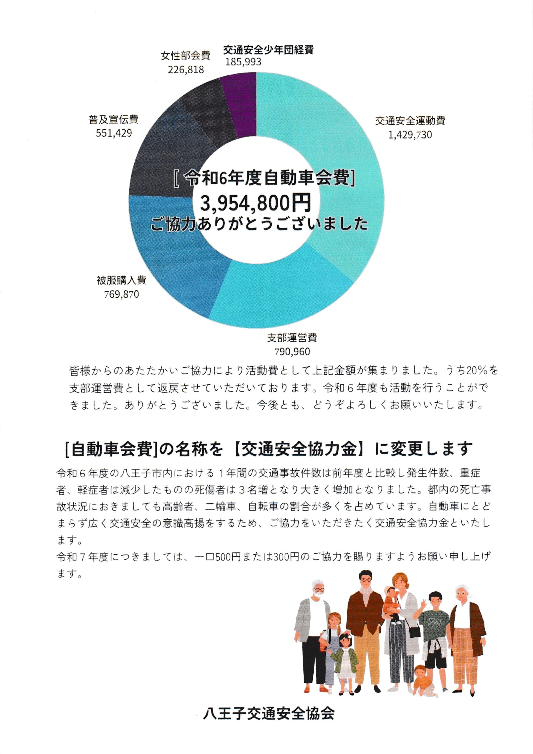 交通安全協力金にご協力お願いします 2025/6/26 八王子交通安全協会より、交通安全協力金へのご協力のお願いです。(旧・自動車会費)八王子交通安全協会は、八王子警察署管内のみなさまの交通安全維持のため活動を行っております。チラシはこちら 表 裏