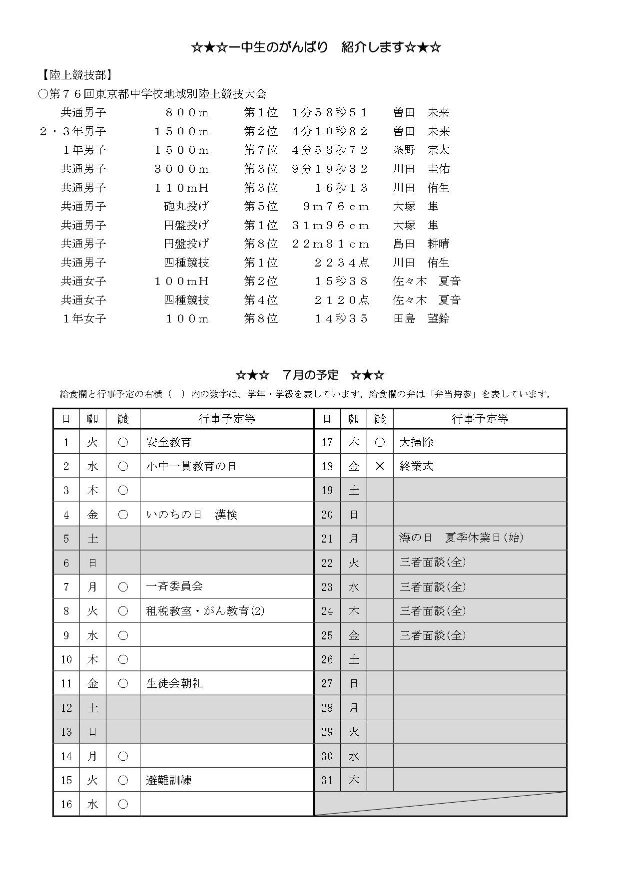 「一中生のがんばり~東京都中学校地域別陸上競技会」