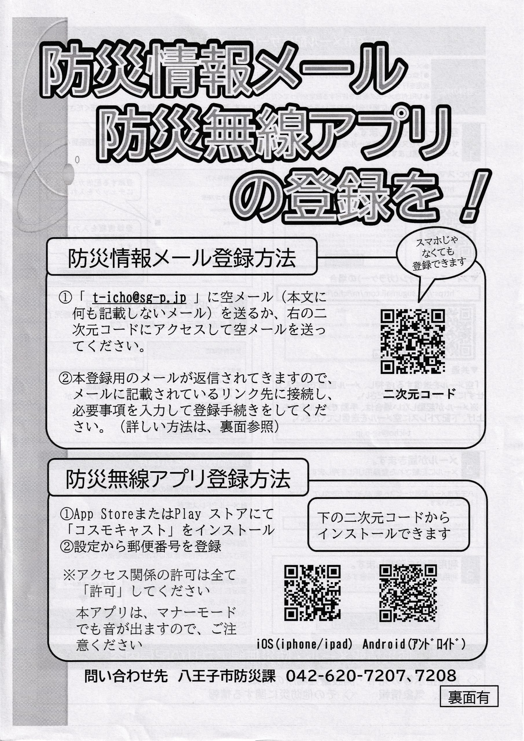 防災情報メール・防災無線アプリの登録を
