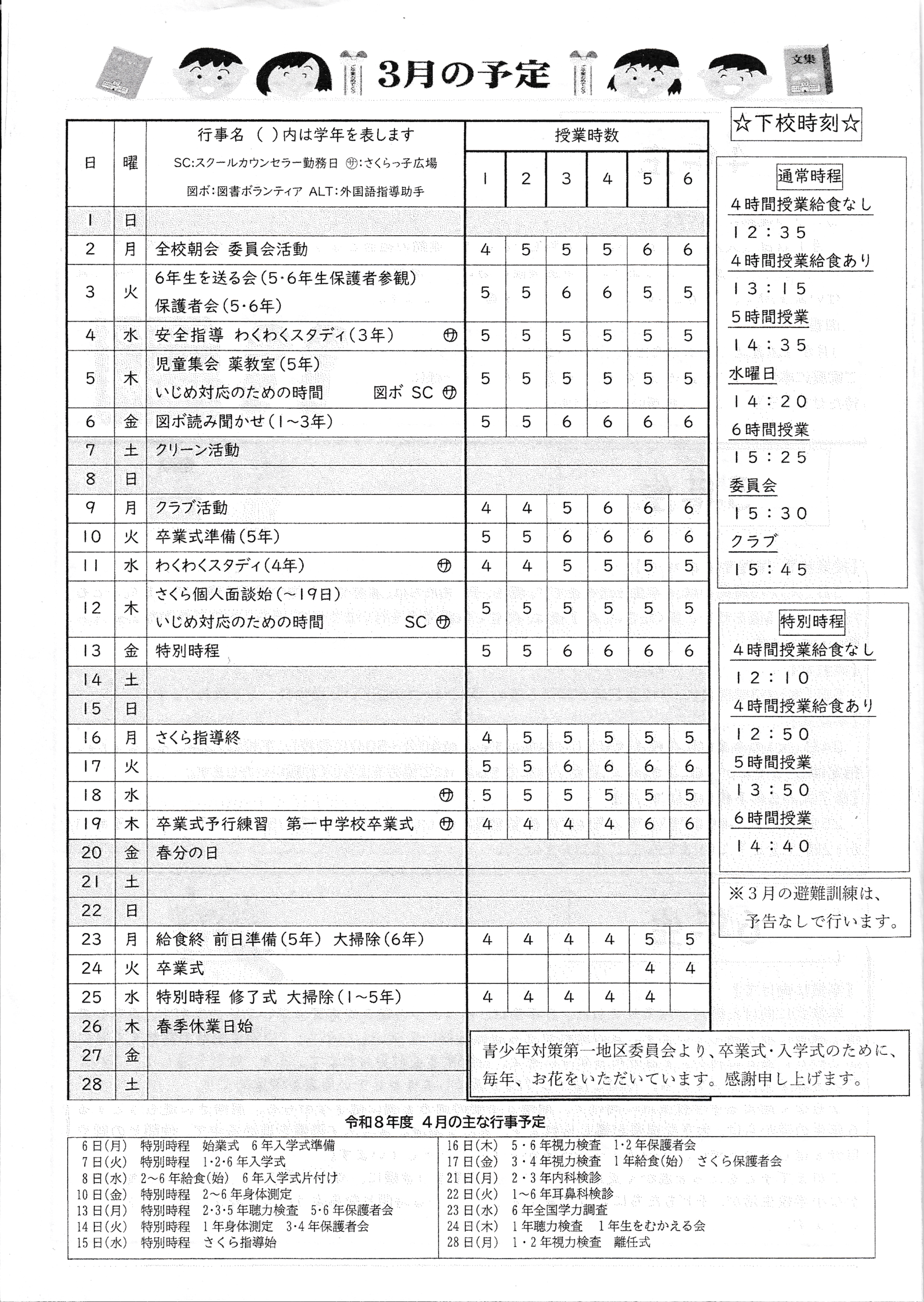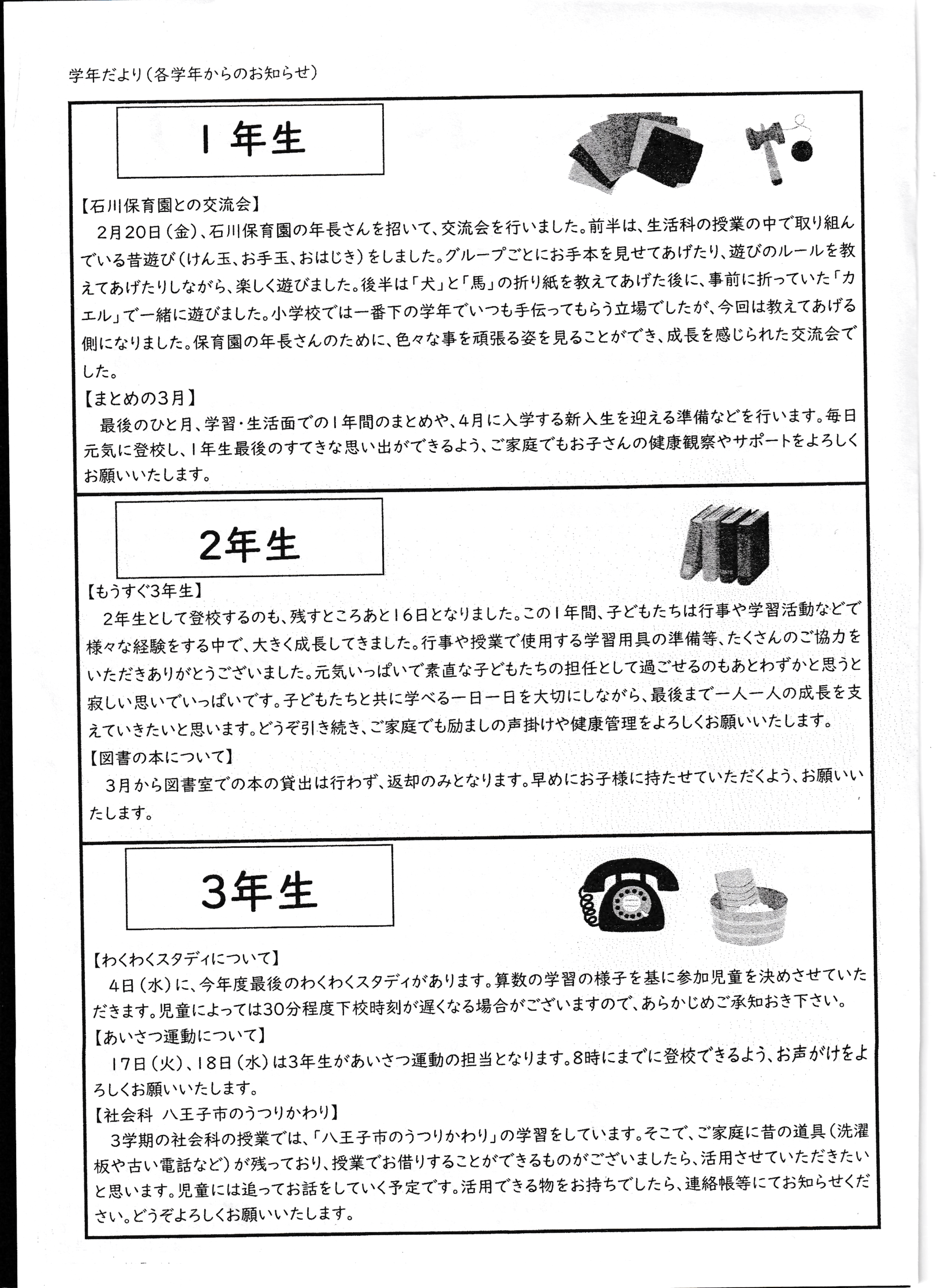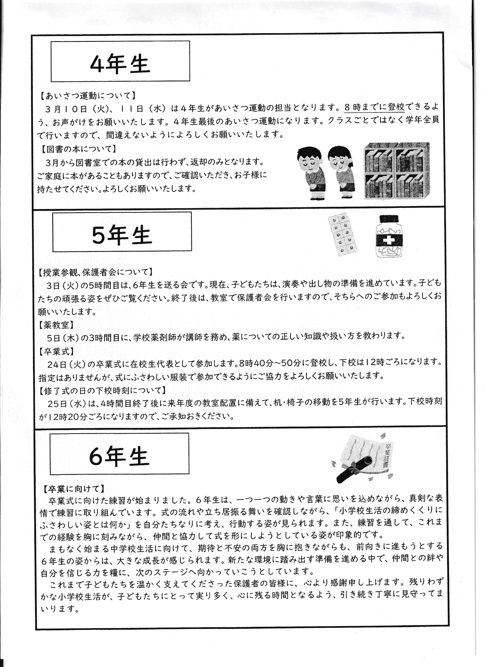 学用品の持ち帰り、春休み中の状況確認、白衣について。