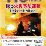 八王子防火防災協会より「秋の火災予防運動11/9~11/15」STOP! 住宅火災!リチウムイオン電池に起因する火災が、近年急増しています。ぜひ、ご覧くださ...