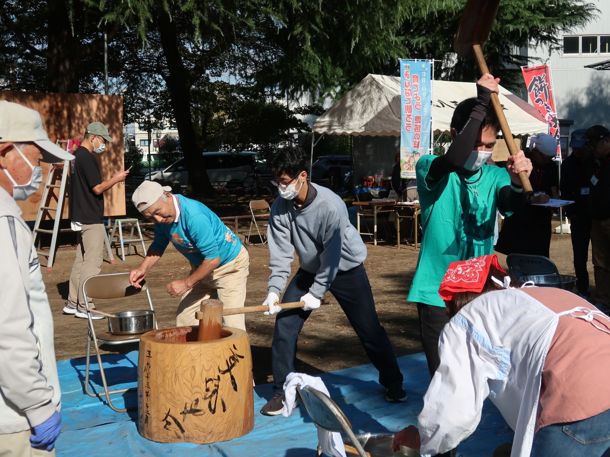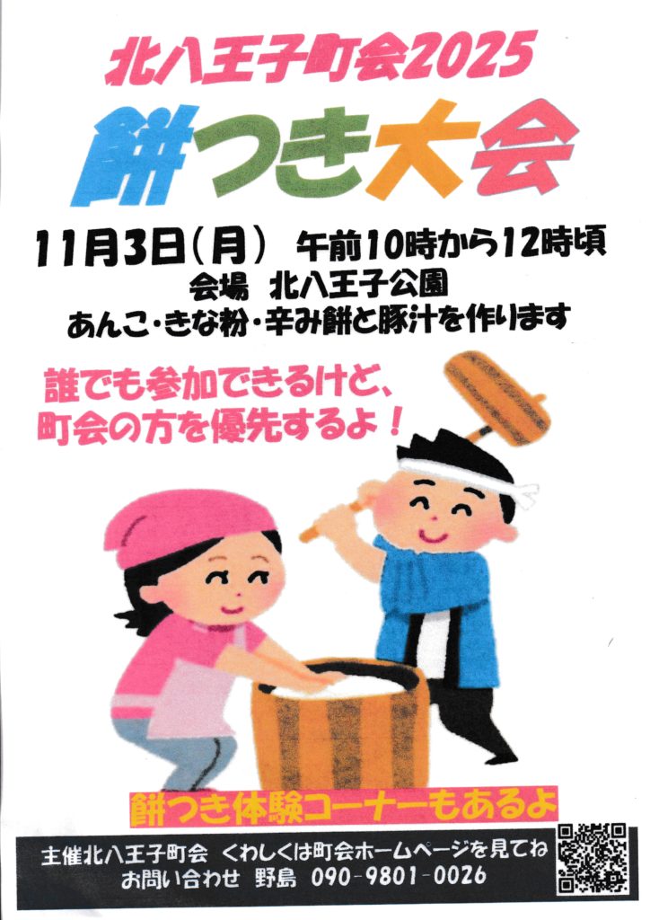 餅つき大会 2025/8/23 餅つき大会 2025年も、11月3日に開催いたしました。お手伝い有志の方、ご協力ありがとうございました。 毎年11月恒例の餅つき大会です。 あんこ餅、きなこ餅、からみ餅など、たくさんの参加者でついたお餅はとても美味しいです!具だくさんの豚汁も格別です。 2025年11月3日(クリックで拡大↓) 一昨年(2024年)の様子 一中ボランティア部 寄付をありがとう 行事トップへ戻る