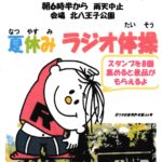 今年も北八王子公園にて、夏休みラジオ体操を行います。7/28(月)~8/1(金)8/18(月)~22日(金)朝6時半から 雨天中止スタンプを8個集めると景品...